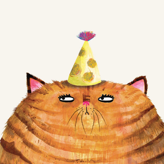 Biglietto auguri CHARLEY RABBIT from London_ Gattone cappellino festa