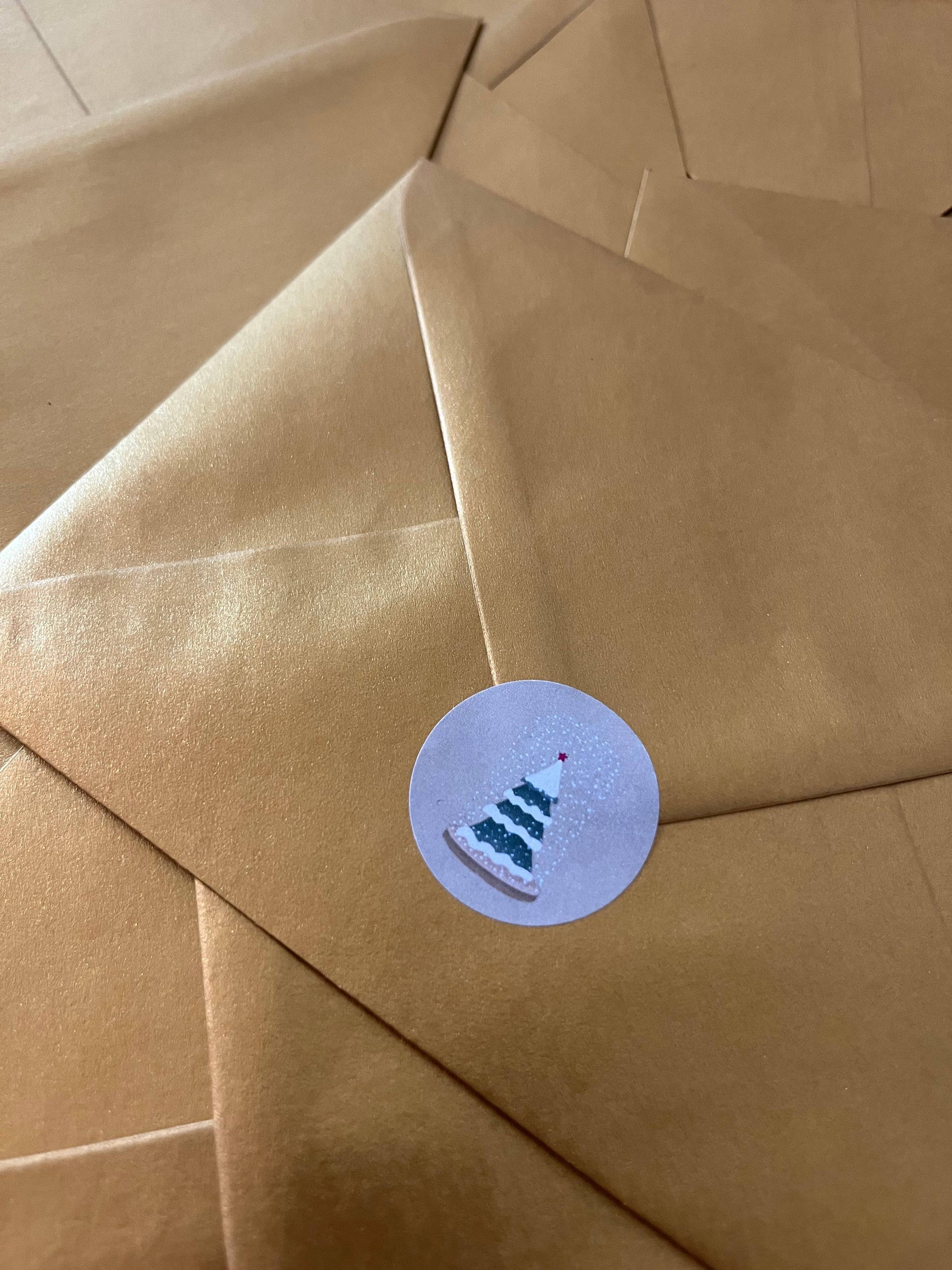 Include busta dorata di alta qualità e adesivo di chiusura abbinato