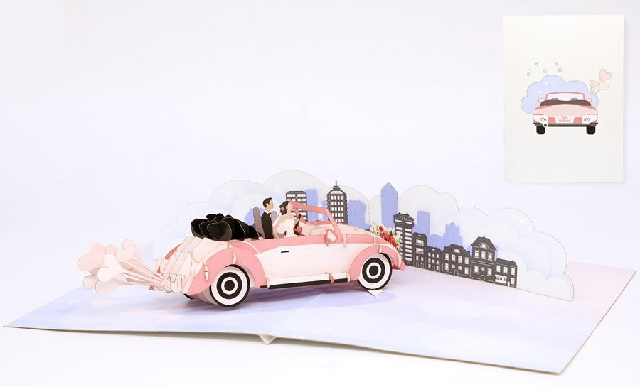 Biglietto Origamo Kirigami matrimonio sposi in macchina