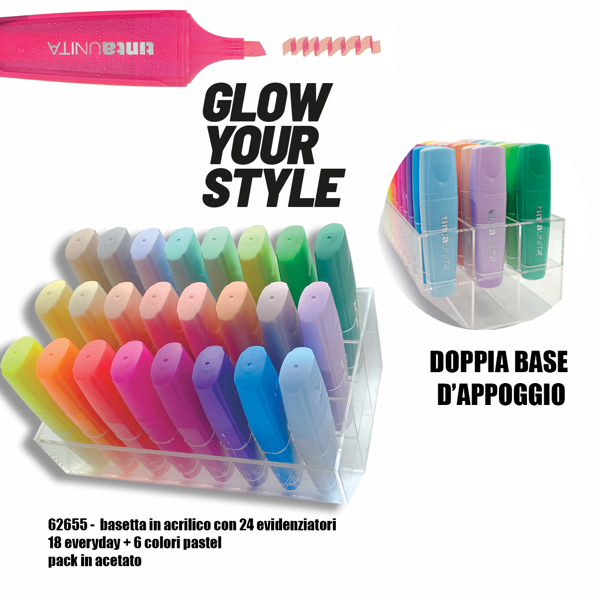 n.24 Evidenziatori glimmer pastel tintaunita in basetta di acrilico