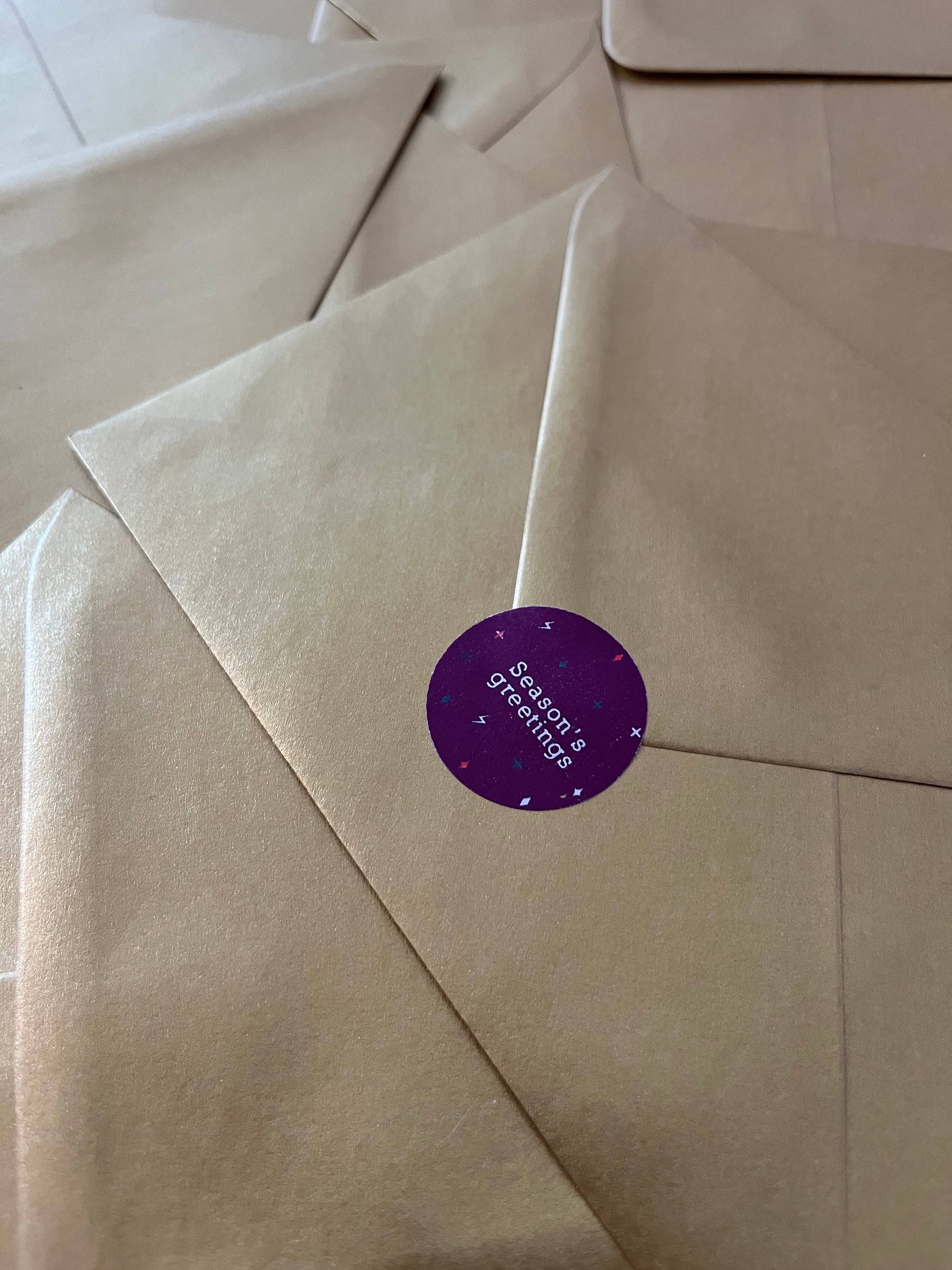 Testo esterno della carta: Season's Greetings Colore della carta: grigio vintage Colore interno della carta: oro Include busta dorata di alta qualità e adesivo di chiusura abbinato.